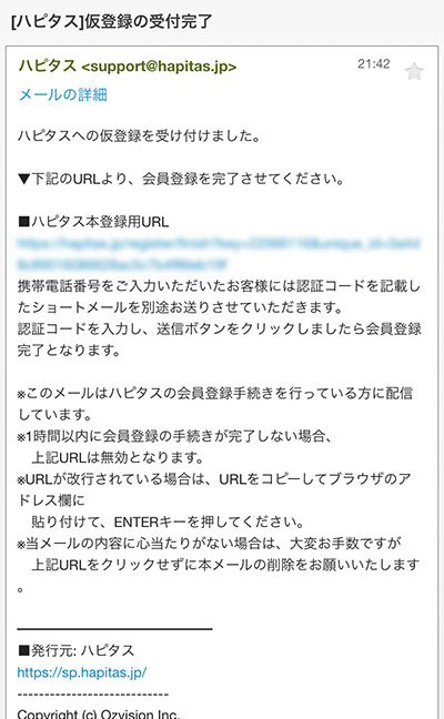 6.送られてきたメールの中にある「登録用URL」を押します。