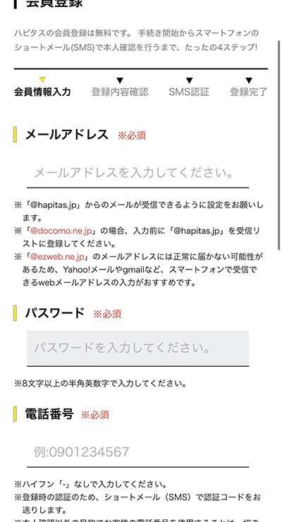 4.次の画面で必要事項を記入していきましょう。電話番号は携帯番号にします。